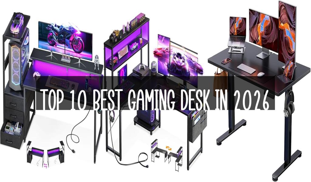 Best Choice AODK 59 Inch Gaming Desk with USB Charging Ports & LED Light- Reversible Computer Desk with Storage Shelves & Monitor Stand, Modern Gamer Desk Table with Fabric Drawers