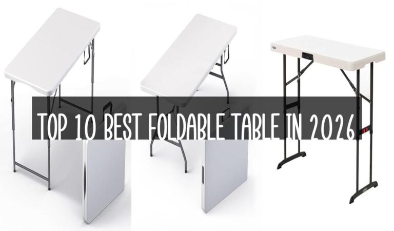 Best Choice 4 Feet Foldable Table Adjustable Height with Built in Handle, Steel Legs | 4FT Heavy Duty Portable | Perfect for Party Dining Wedding Events Picnic Indoor Outdoor Camping